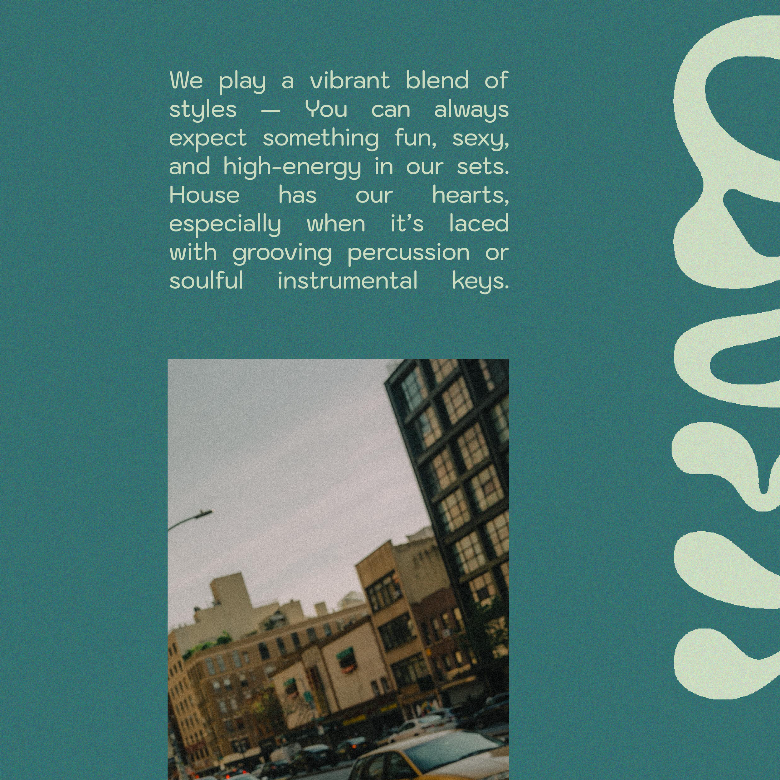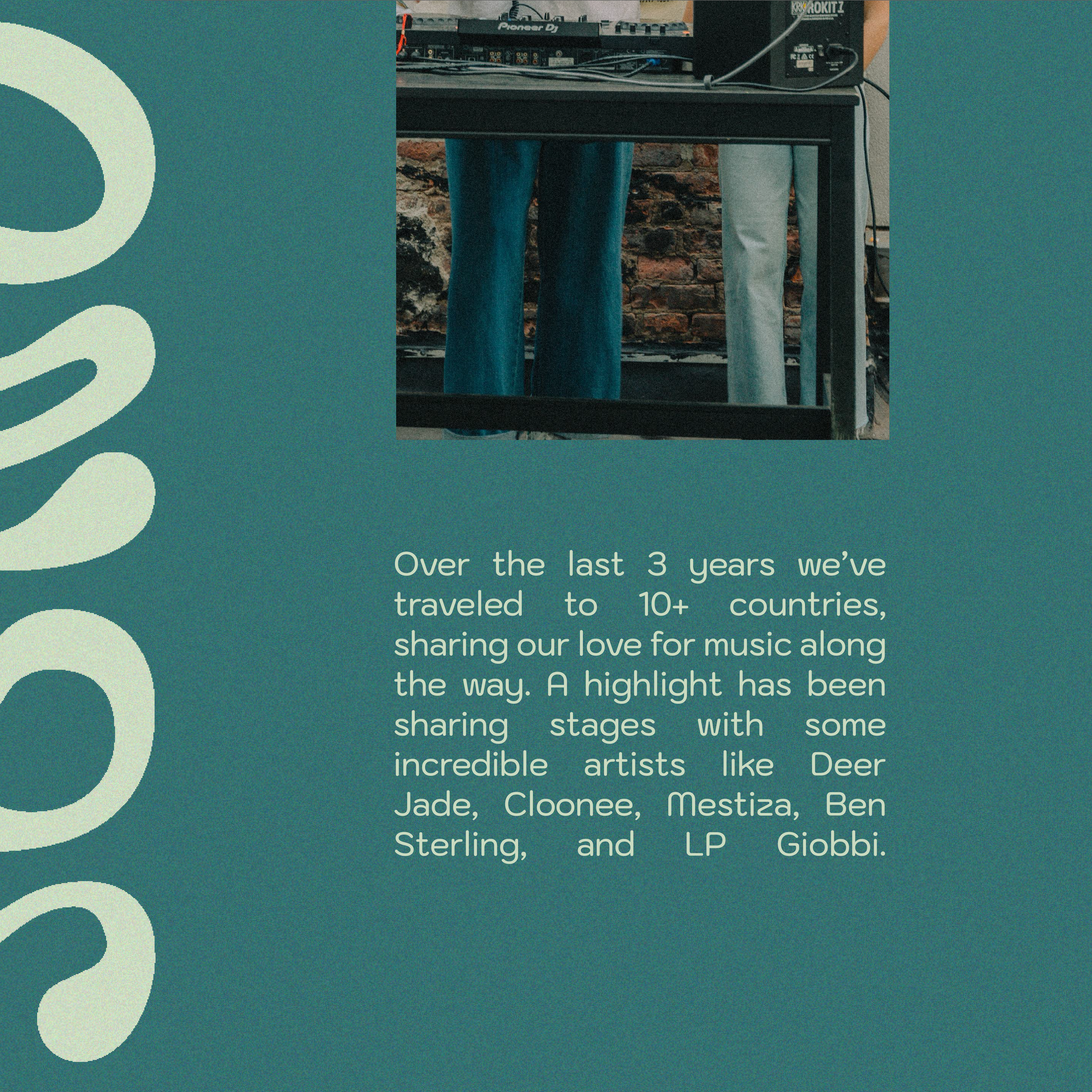 Is a creative outlet where Music takes centre stage. Apart from Djing i also created a brand identity for our duo. With 5 years of experience, countless festivals, club nights, events, bars, and restaurants, this has been a big part of my life. It also opened up many doors for creative work in design and event curation. I fell in love with the culture and community it connects you with wherever you go, and also provided a platform where fashion is fun and well considered, spending a lot of time on stage.