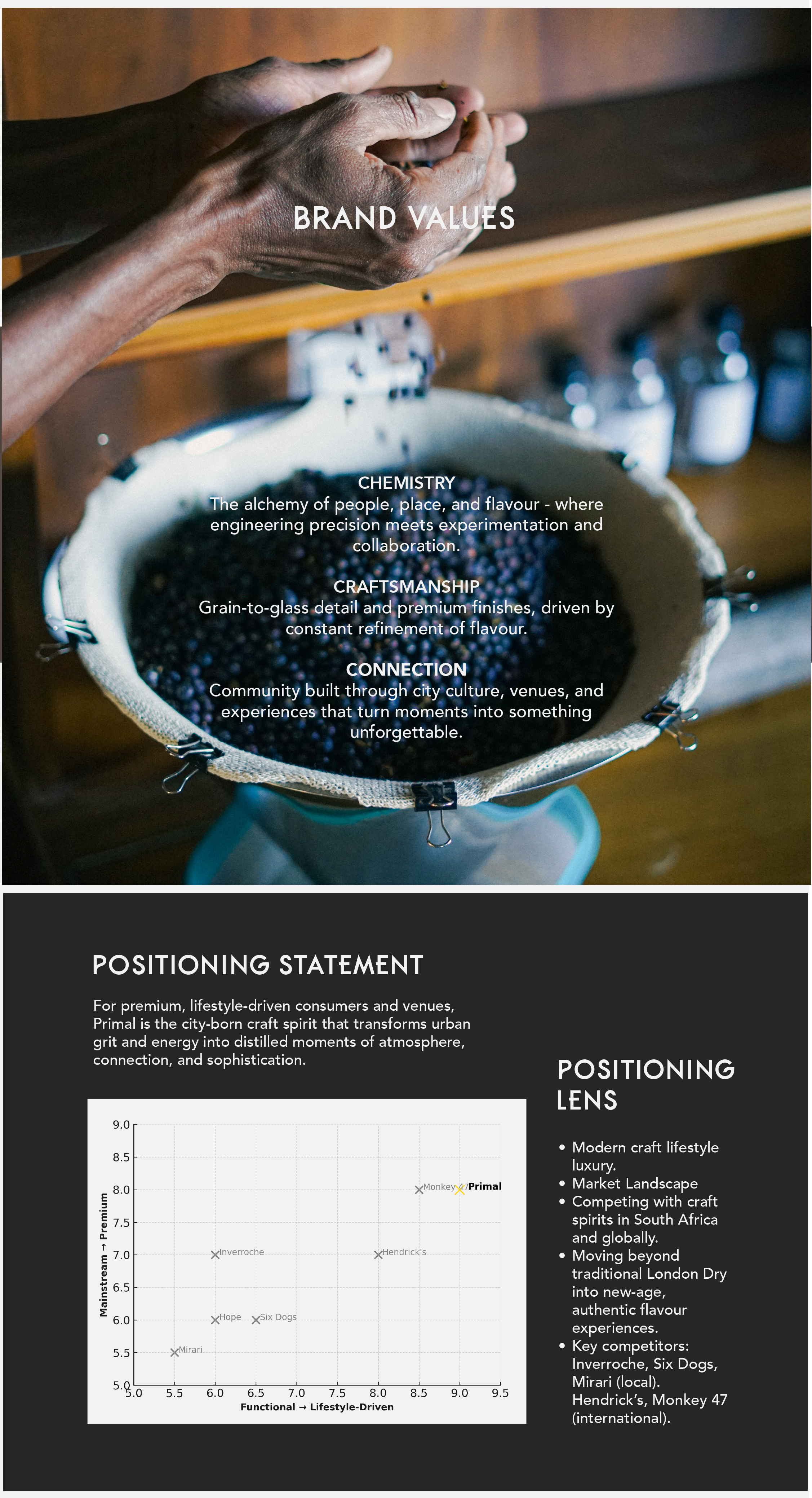 Primal Distillery is a Gin brand from South Africa that was bought by new owners Aaron & Gabe. Two young engineers with a passion and a dream. They gained support from Nando’s Co-founder, Robert Brozen, and have been on an exciting journey since. I was brought on board as a brand consultant, giving their brand meaning and building their brand guide, except for pre existing logo design from scratch. I worked alongside Fine group global marketing agency to bring this to life.